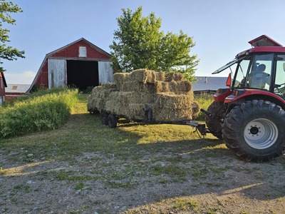 Mulch hay, square bales. Ideal for gardens, landscaping, erosion control, stored under cover. Pickup at the farm, loading help available. Bulk orders welcome, ask about volume discounts