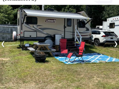 2019 Coleman camper 25 foot complete with everything also 2005 tracker deep deep fishing boat welded aluminum pro guide B16WT with two downrigger’s and the mooring on a beautiful beach at Sebago Lake
