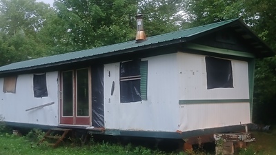 12x40, 2 bedr, 1 bath, metal roof, inside needs finishing, flooring & 12x40, 2 bedr, 1 bath, metal roof, inside needs finishing, flooring & woodstove inc, solid. Handyman special or great hunting camp. You move.